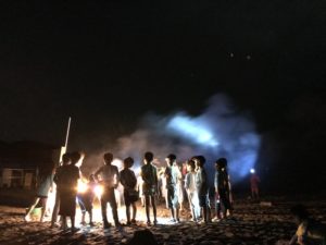 夜は焚き火でマシュマロを焼きながら、小屋作りの作戦会議。